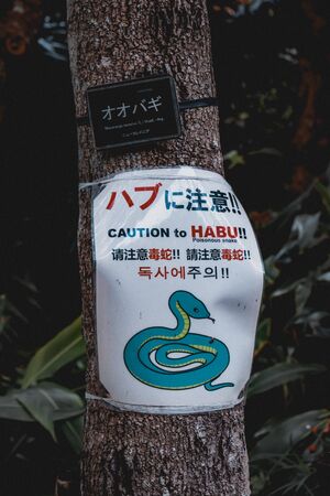 Warning sign against dangerous poisonous Japanese Okinawa snake Habu