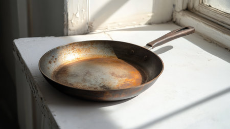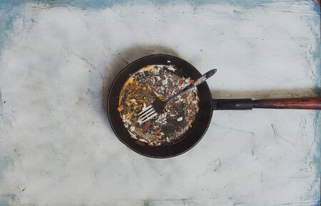 Empty and dirty frypan after breakfast, lunch or dinner
