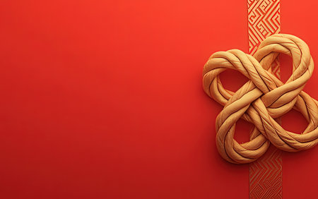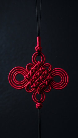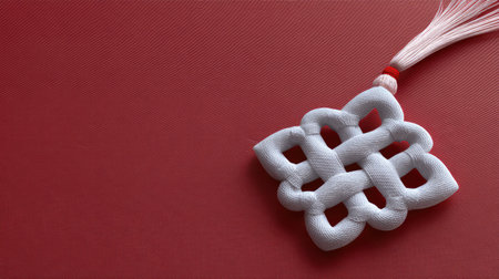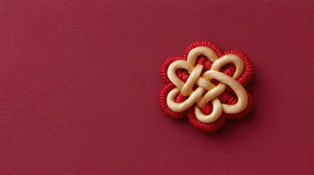 This stunning decorative knot on a rich red background represents harmony and good fortune. Its intricate design showcases traditional craftsmanship and artistry.