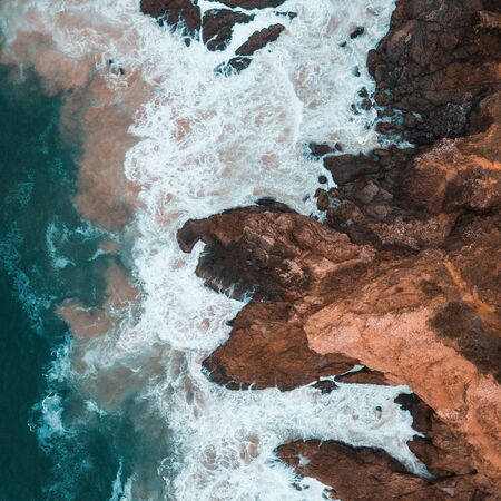 A high angle shot of beautiful sea waves in Madiera, Portugal