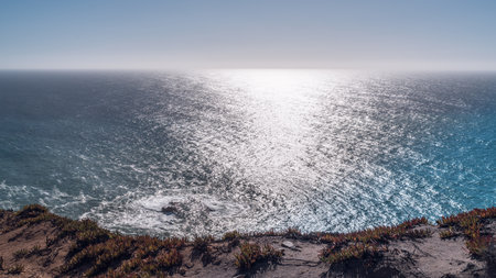 Panoramic view of the Atlantic Ocean from the top of a cliff.