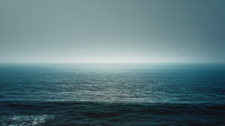Calm waters of the ocean stretch out under a twilight sky with a serene horizon