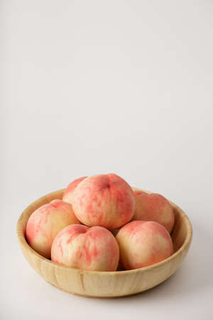 honey peach in wooden bowl on white background