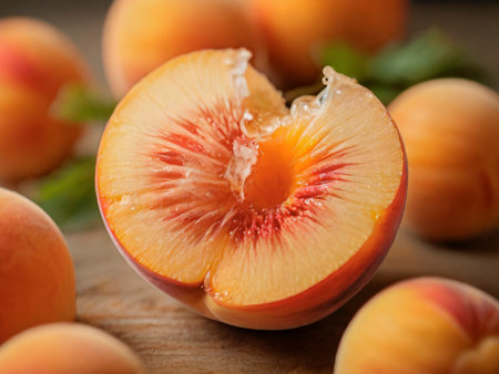 Ripe peach fruit slice. Creative Photo