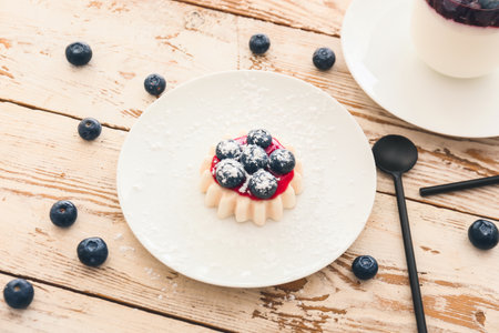 Vegan dessert with creamy panna cotta with berries
