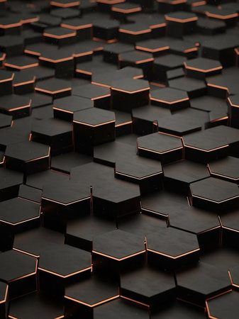 Close-up of a dark geometric pattern with textured hexagonal shapes, creating a modern and sophisticated abstract design.