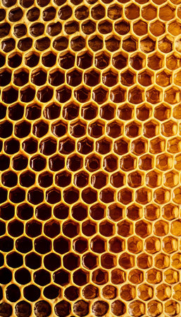 highly symmetrical hexagonal yellow honeycombs with honey