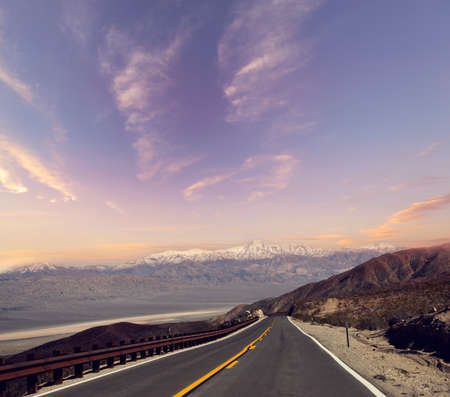Highway in Death Valley National Park at sunset, California, USA