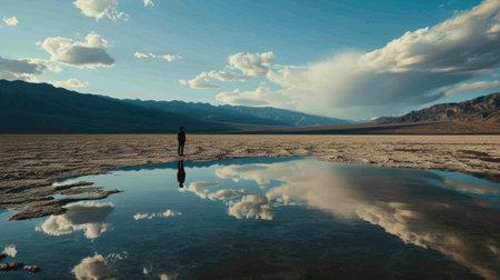 Silhouette of a man standing in the middle of a salt lake