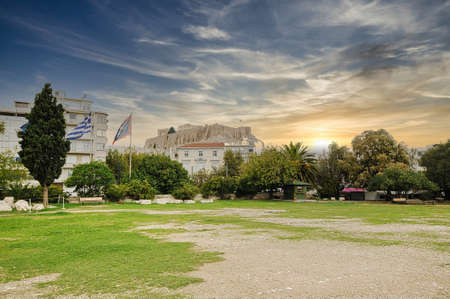 A picturesque cloudy scenery in Acropolis of Athens, Greece
