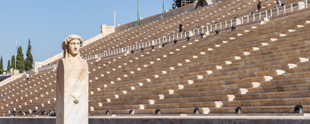 Athens, Greece - July 26, 2021: Panathenaic Stadium or Kallimarmaro it is the only stadium in the world built entirely of marble. Rebuilt in marble by Herodes Atticus, an Athenian Roman senator