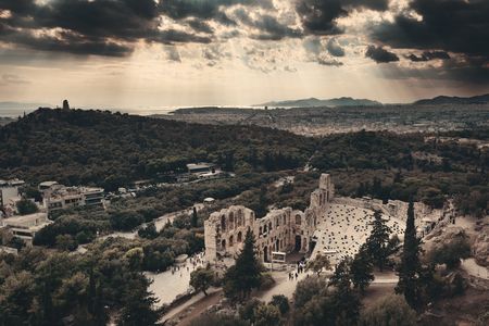 Athens cityscape with Herodes Theatre viewed from above, Greece.