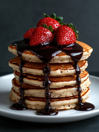 Delicious chocolate pancakes with fresh strawberries