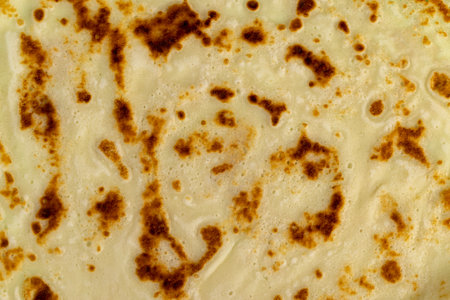 Round golden crepe, cooked to perfection, highlighting delicate texture and inviting aroma for Maslenitsa celebrations or shrove tuesday