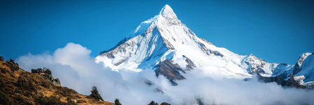 Mountain peak with clouds in Himalayas, Annapurna Conservation Area, Nepal