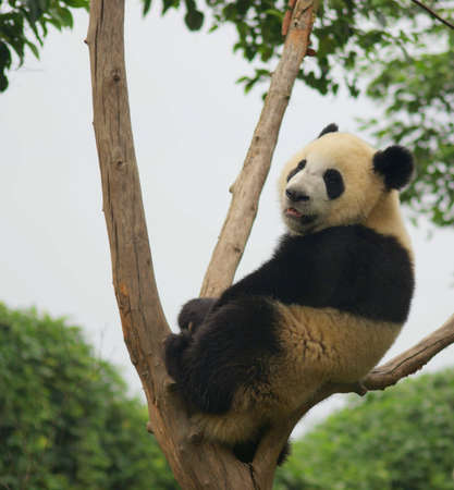Panda is climbing up the tree, Chengdu Panda Base, China