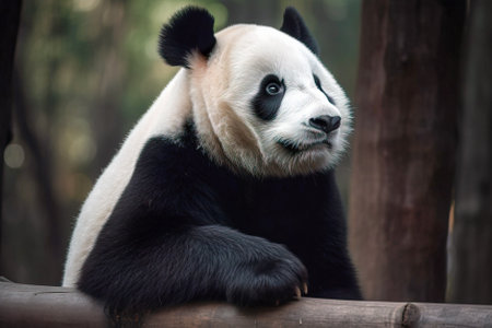 Giant Panda in a cute tree. (Ailuropoda melanoleuca) Animal and wildlife concept. Panda in Singapore Zoo. Generative AI