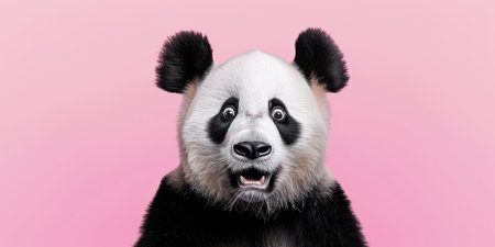 A Surprised Panda With Wide Eyes, Isolated On A Pink Background. Сoncept Surprised Panda, Wide-Eyed, Isolated, Pink Background.