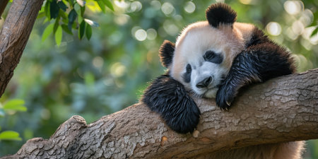 Gentle Slumber: Panda Napping on a Tree Branch