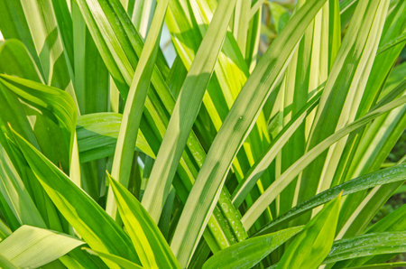 Close-up of Pandan leaves (Pandanus amaryllifolius) in garden with sunlight.