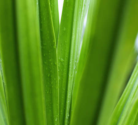 Fresh Pandanus amaryllifolius leaves with water drops.