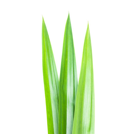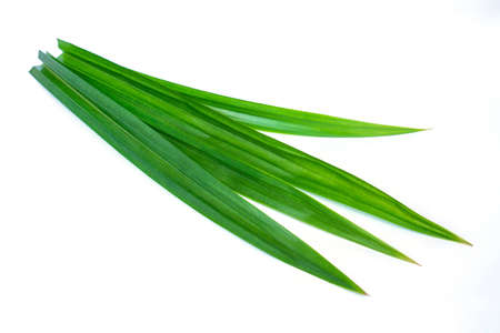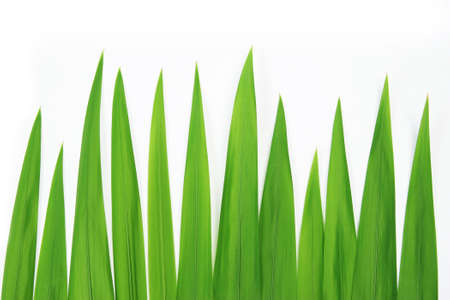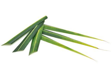 Pandanus leaf cut out outline green leaf isolated on white background, fresh