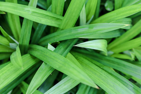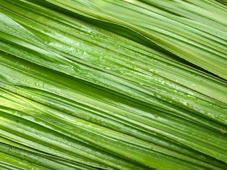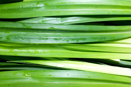 Fresh Pandanus amaryllifolius leaves with water drops.