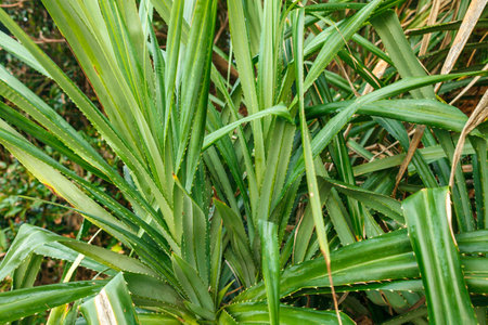 Local tradition farming Pandan Pandanus plant close up texture of green leaves, Uthaithani - Thailand