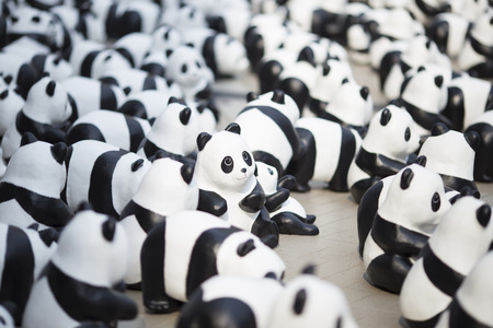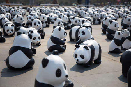 Bangkok, Thailand - March 8, 2016 : 1600 paper Mache Pandas campaign showcase in Bangkok by WWF to promote environmental preservation.