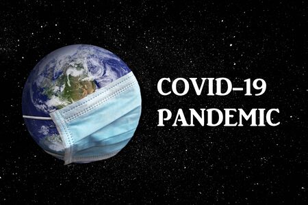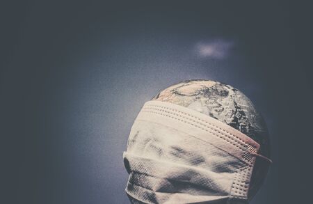 Planet earth wearing surgical face mask for protection. Concept of the world's fight against COVID-19 coronavirus pandemic.