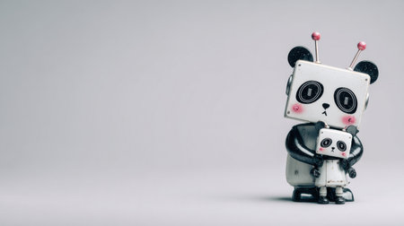 Two panda robots, a larger and smaller, displayed against a plain light gray background.