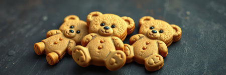 Cute teddy bear cookies arranged neatly on a dark surface for a delightful treat