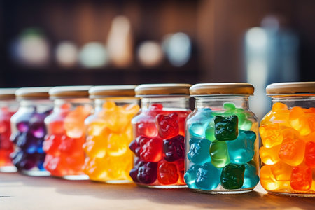 AI Generated. Gummy Bears Background for Wellness and Health Products in Natural and Organic Style