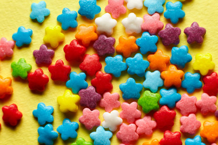 Colorful gummy candy shapes scattered on a bright surface inviting cheerful snacking
