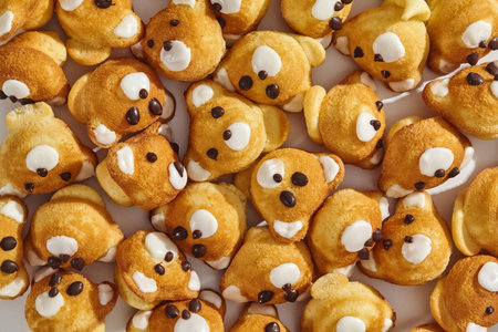 Cute bear-shaped muffins forming a delightful pattern, perfect for a childrens party