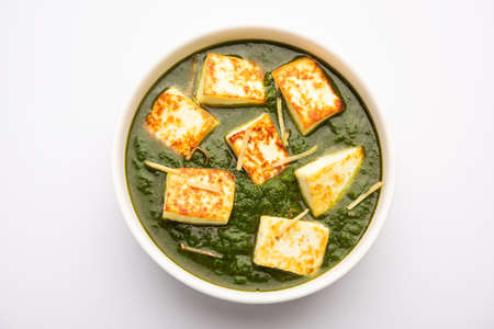 Palak paneer, a popular vegetarian dish in Indian cuisine made with spinach and paneer cheese.