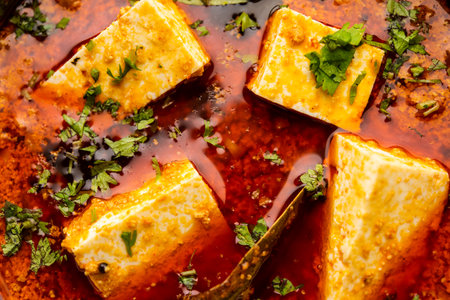 Delicious paneer butter masala dish served on dark plate