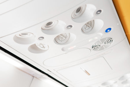 overhead light and air conditioner in airplane cabin
