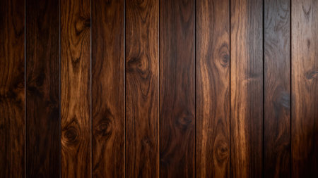 Wooden background with dark brown wood planks. Wooden texture for design and wallpaper, top view. The concept of a rustic wooden wall, a natural material. Flat lay. Background, copy space. Stock photo with 2/3 space for text. --ar 7:3 --v 6.1 Job ID: 1c8d0794-c9ed-4368-b180-3f68eea30726