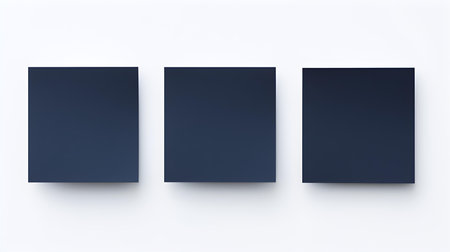 Set of navy blue square paper notes on a white background. Brainstorming template with copy space