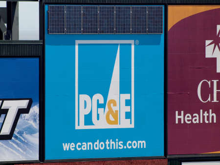 San Francisco - June 16, 2010: PG&E - wecandothis.com - Sign with Solar Panels at AT&T Park Ballpark in San Francisco City, California.