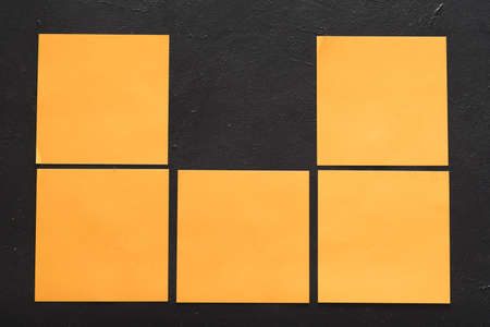 blank post it notes. tasks ideas memos concept. empty space on black background.