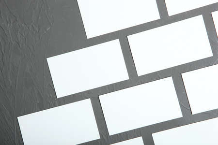 Gray business cards on beige burgundy background with shadow. Creative layout