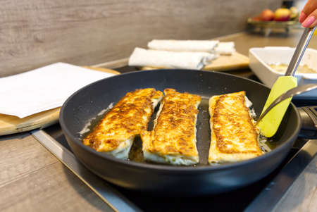 lavash appetizer fried in a pan. Snack for party with friends. close up