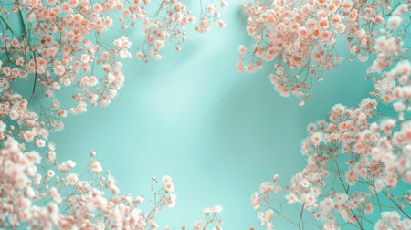 A frame made of gypsophila flowers on a pastel background creates a delicate and sophisticated floral composition with ample space for your tex