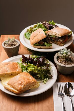 Cheese ciabatta Sandwich and Seasoned Bulgogi ciabatta sandwich on plate