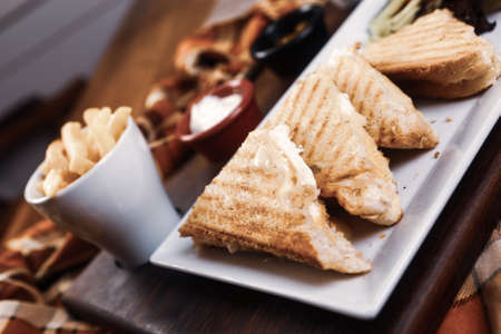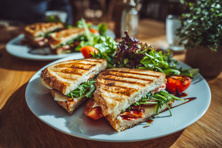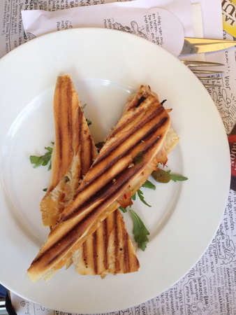 panini, italian sandwich and salad or ham and cheese sandwich for serve