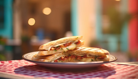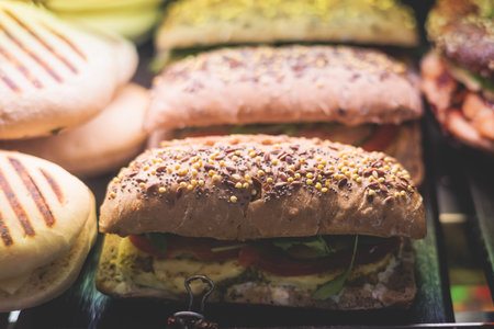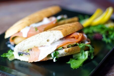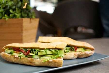 tasty sandwich on a table in a restaurant, shallow depth of field