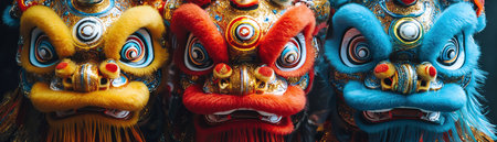 Chinese New Year lion eyes. Culture face art lunar celebration. Generate Ai