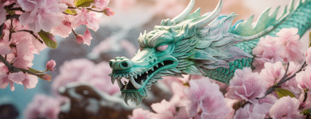 Chinese dragon, in the style of detailed multi-layered compositions, fantastic character colorful wood carvings, intricate floral arrangements, close-up, colorful bright background. ai generative art